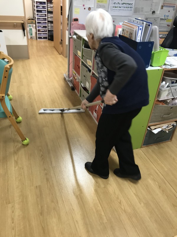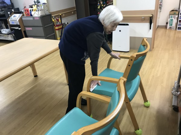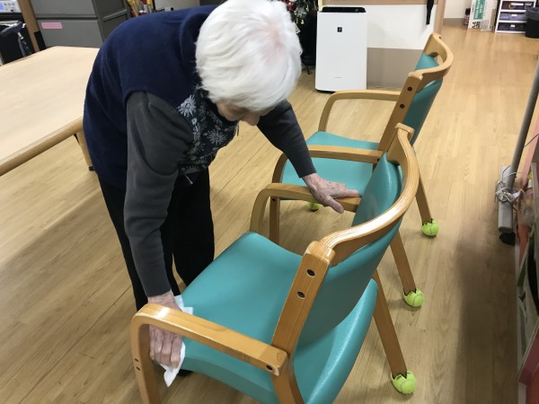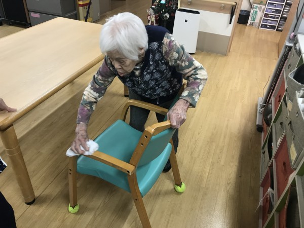 毎日ご利用者様を迎えるために掃除をしていますが、12月ももうすぐ終わるこの時期は、職員が掃除をしていると手伝って下さるご利用者様もいます。
