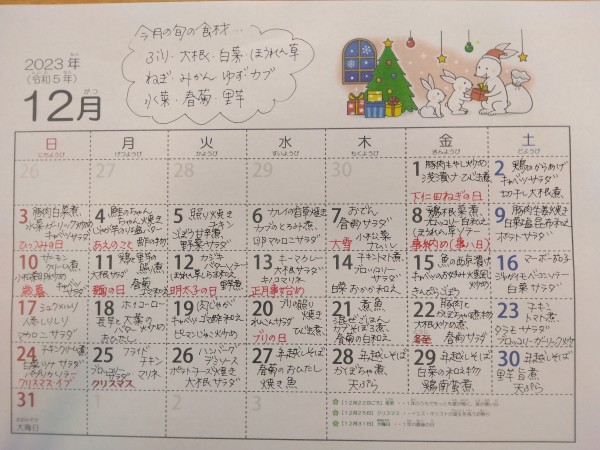 クリスマスや年末がある12月、献立もイベント仕様ですね。