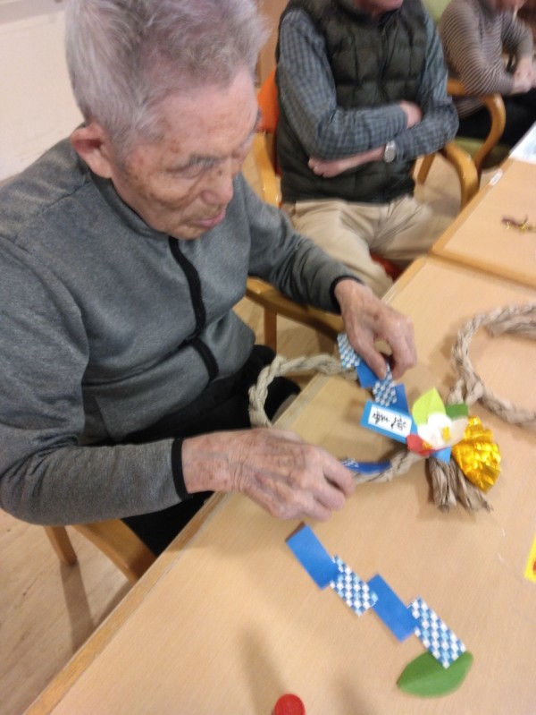 製作レクで「しめ縄」をつくりました。