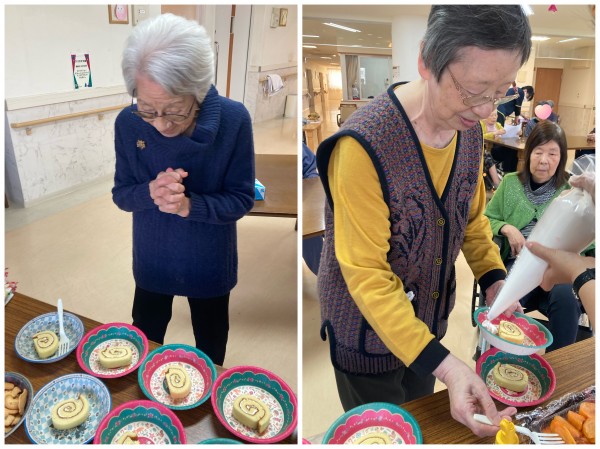 そして、おやつを食べていただきながらテレビで「一年間の思い出ムービー」を流しました!