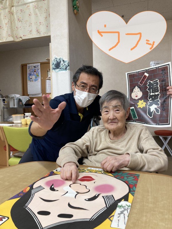 元旦に福笑いを行い利用者様と一緒に大笑いの元旦になりました!(^^)!