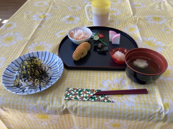 お正月料理といつもと違う盛り付けでお正月気分を味わっていただきました。