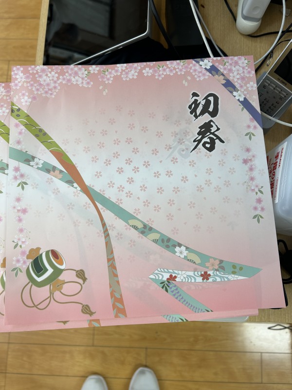 2024年元旦の朝食にお正月用のペーパーナプキンが提供されました。