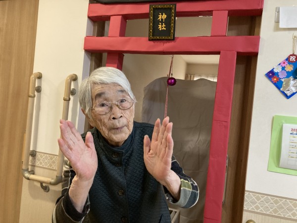 職員の協力で立派な鳥居が出来上がり、ご利用者様にお詣りしていただきました。