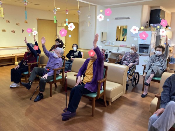 ご利用者様は、参道を歩くかのように足踏みをし体を動かします。