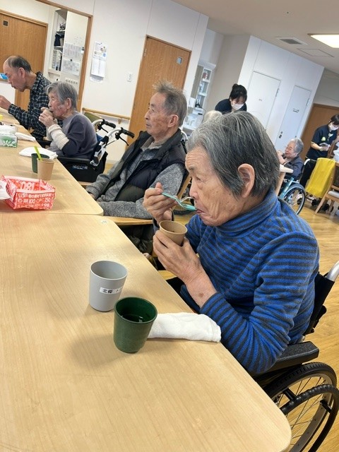1月11日、新年会が行われました。新年会の開始は和装看護師による電子ピアノ、皆様一月一日を歌われて準備万端です。