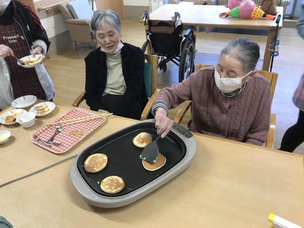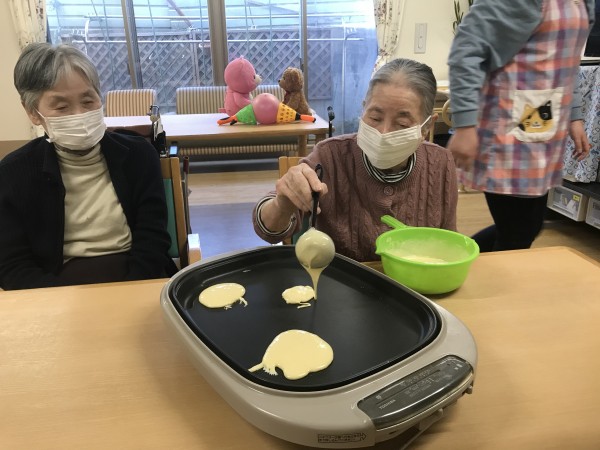 皆様ホットケーキは好きか聞くと大好きといって下さる方もいて、作る時から期待で笑顔を見せる事も有りました。