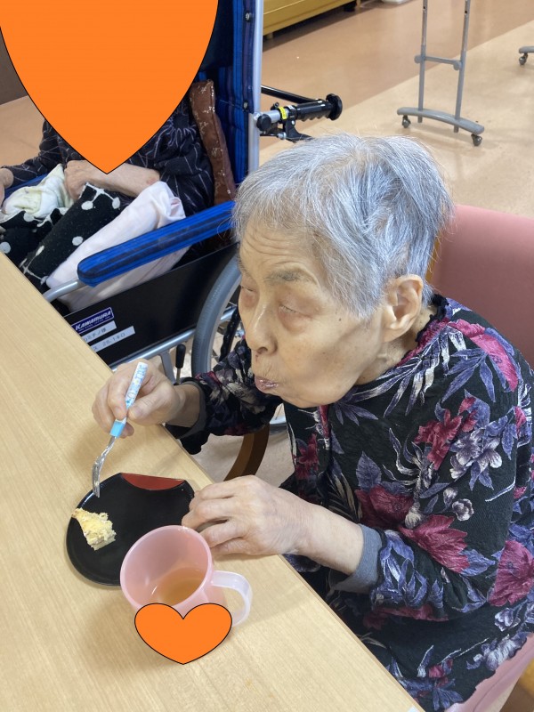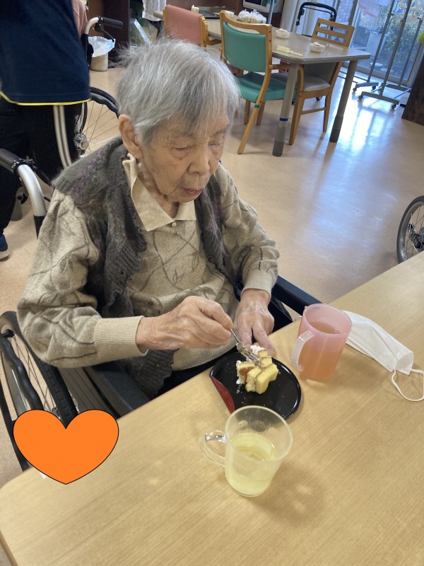 おやつには、職員手作りのケーキを