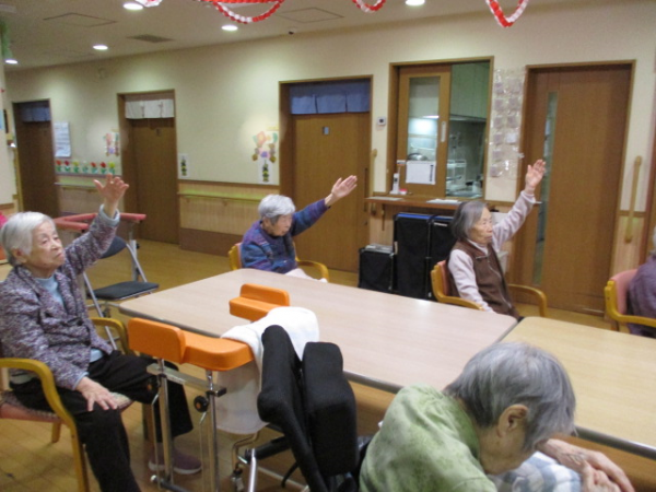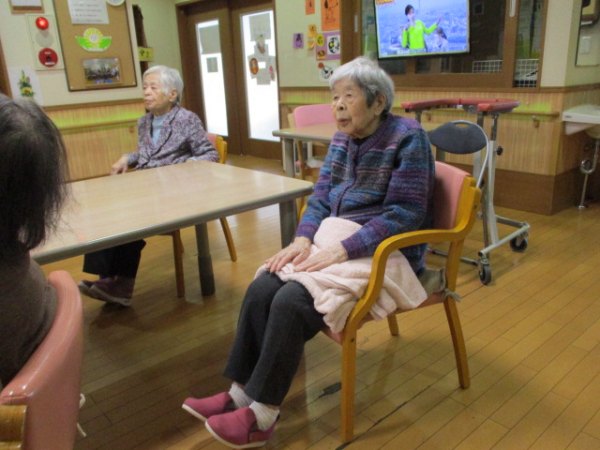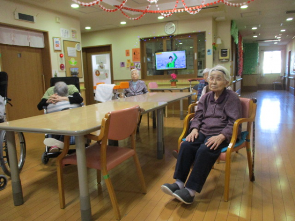 1階のご利用者様のご様子をお知らせします。毎月行っているリモート体操です(^^)/