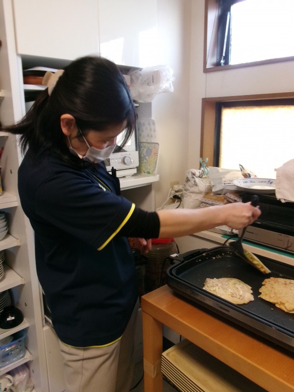 3. 1/24 お昼ご飯アレンジメニューお好み焼き焼いたよ~!(^^)!大好評 ̄(⋈◍>◡<◍)。✧♡