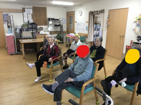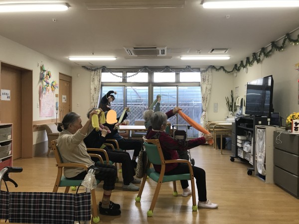 テレビ画面からですので職員もご利用者様に声を掛けながら見本になりながら行う事で