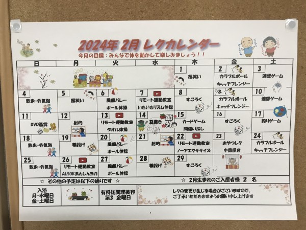 本日は2月の予定表が完成しましたのでそちらの紹介となります。