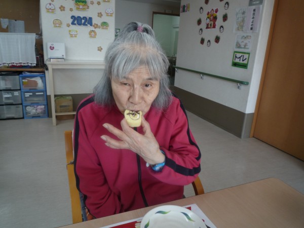 豆まき後のおやつの様子を