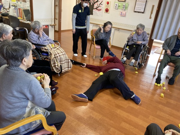 始めは皆さん遠慮がちに投げていましたが、なかなか倒れない鬼に力も強くなり、顔を目掛けて投げる利用者様も・・