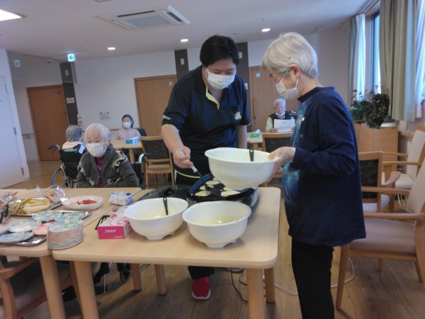 生地が出来たらホットプレートで焼いていきますよ(^^)