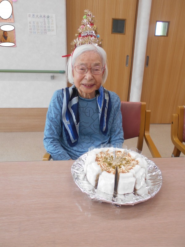 ハッピバースデイの歌を皆様で歌い、お誕生日をお祝いれております。