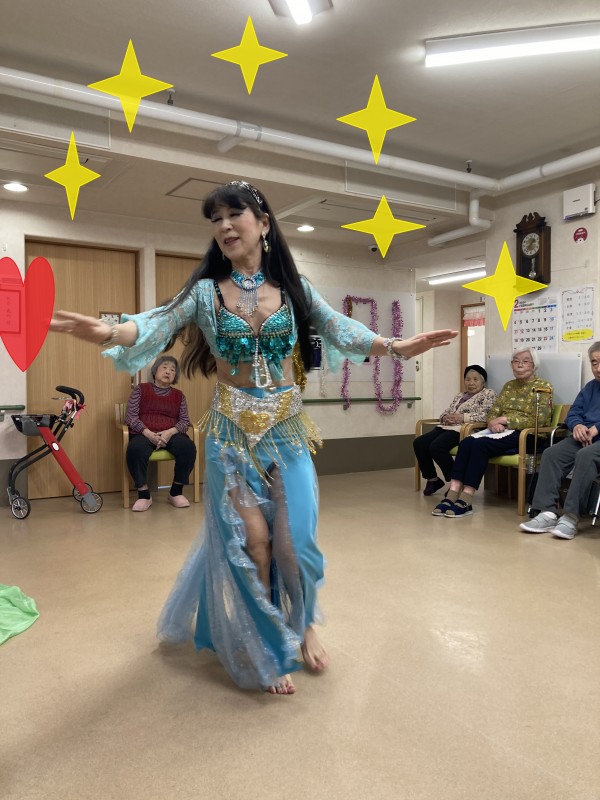 こんにちは(o^―^o) 今日はベリーダンスの先生タマーシャさんがボランティアで来てくださり日頃見れない古代エジプトダンスを踊って下さいました。