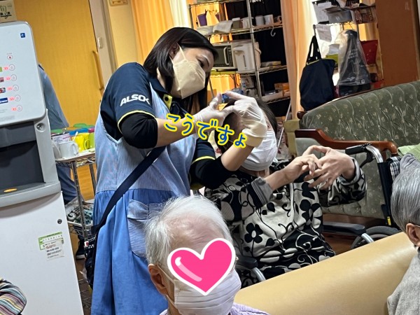 「こうですょ」と、ケアスタッフが一緒にやれば