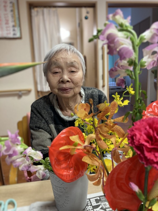 本日は華道クラブです!皆さん若かりし頃 お稽古をしていた方もいてお花を生けることが
