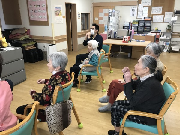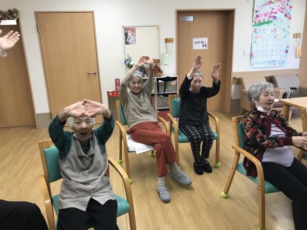 皆様テレビに繋がった体操の様子を観ながらマネをして体を動かし