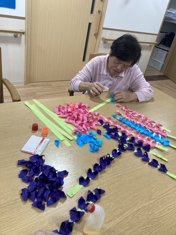 こちらでは藤の花を作成中です(๑˃̵ᴗ˂̵)