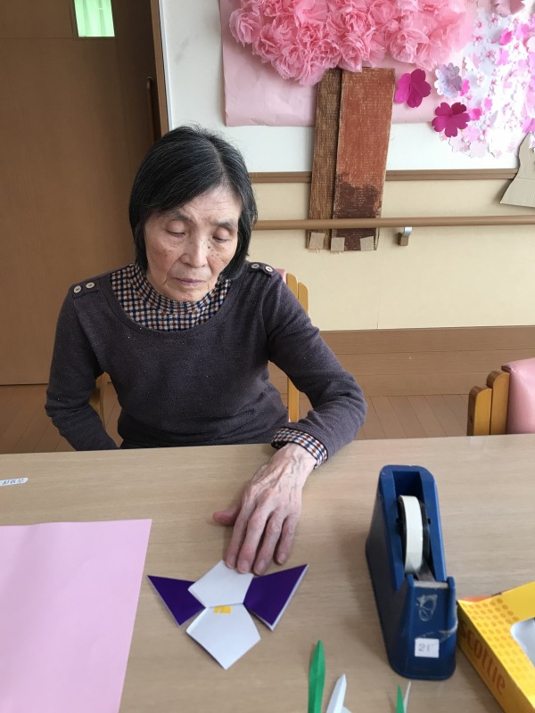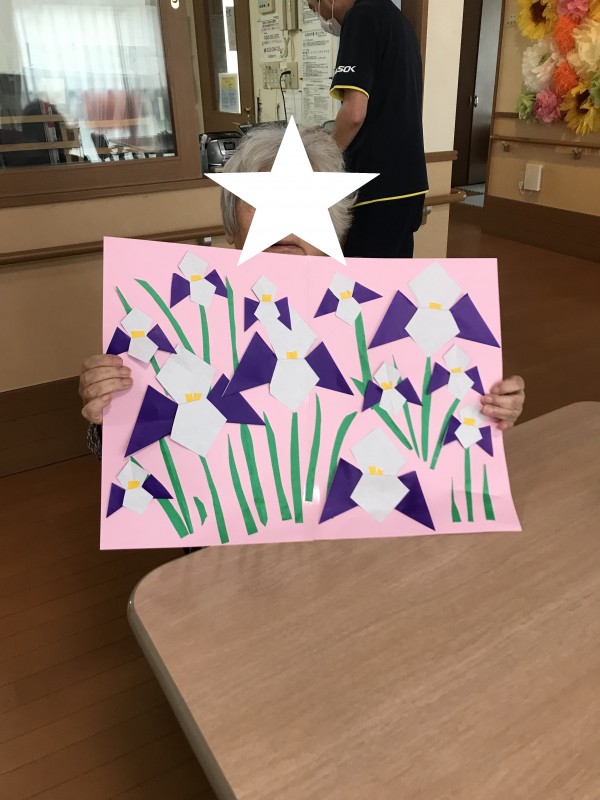 器用に「しょうぶ」を折り、用紙に張り付けます ( `ー´)ノ