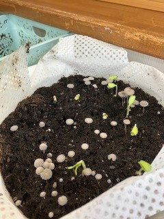 発芽までは早かったのですが、それと一緒に謎のキノコも出てきました。びっくり~。