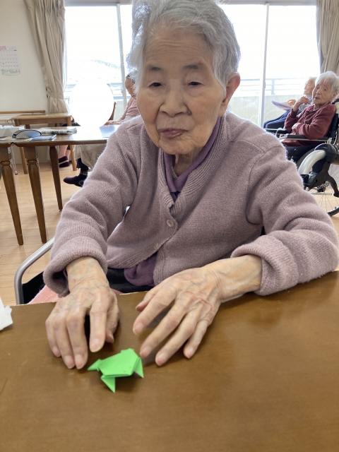 ★☆ぴょんと飛び跳ねる折り紙カエルでレクリエーション②2024年✨ 『みんなの家 三橋6丁目 介護ブログ』☆★