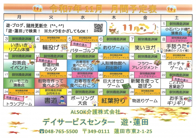 【予定表】11月は色々とお出かけしますよー!