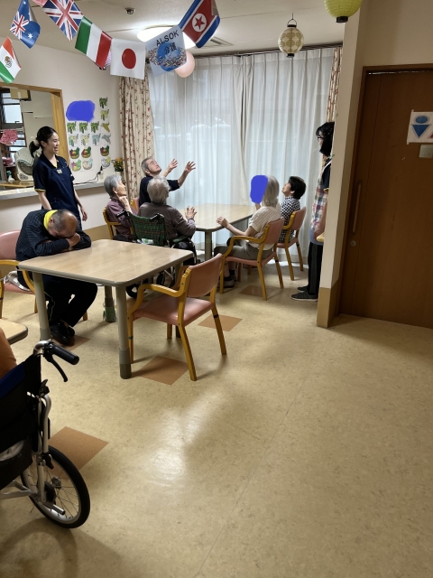 1F・風船バレー・レク【グループホームみんなの家・新川崎介護ブログ】