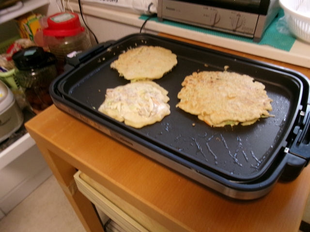 1/24 お昼ご飯アレンジメニューお好み焼き焼いたよ~!(^^)!大好評 ̄(⋈◍>◡<◍)。✧♡