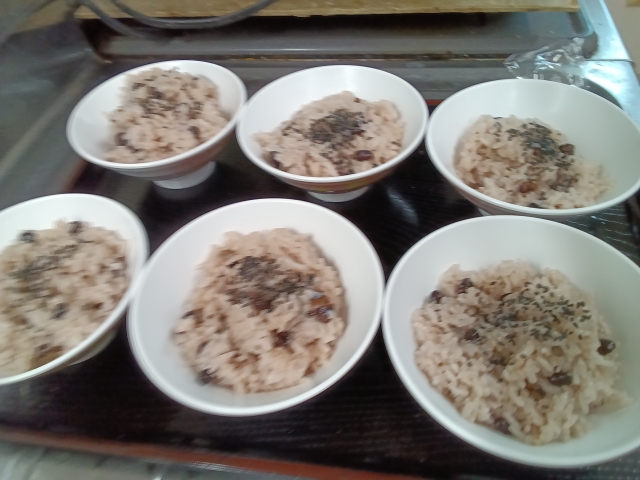 敬老会の昼食は「お赤飯」❣