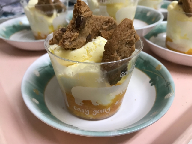 前回のアイスクリームの残りで今日のおやつはまたまたパフェです!いつまでも暑いからアイスは美味しいですね!