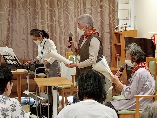 毎月習字大会を行っています。習字レクリエーションは、学校や習い事などで習字を書かれていた過去を想起して頂く効果と、「次はもっと奇麗に書きたい!!」などの意欲が自然に湧いてくる効果があるため、今後も皆様に楽しんで参加していただきたいです。